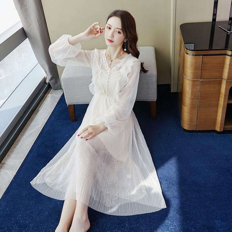 2021年秋新しいスタイルのロイヤルシスター、軽い成熟したスタイル、高度な感覚、軽い贅沢、レディースレースの妖精のドレス、薄いロングスカート オータム 秋物 yingd45343313388