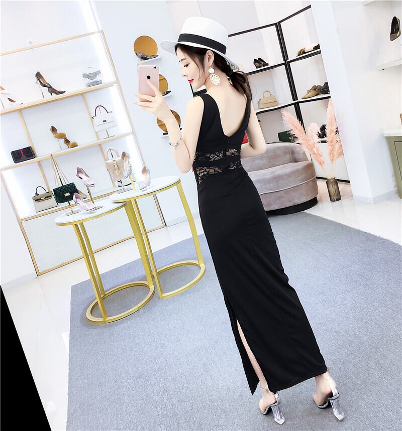 フランスのレトロな気質フェミニンなヘップバーンスタイルのロングスカートライトラグジュアリーレディースセクシーな中空スプリットドレス女性の夏 サマー 夏物 yingd43559069252