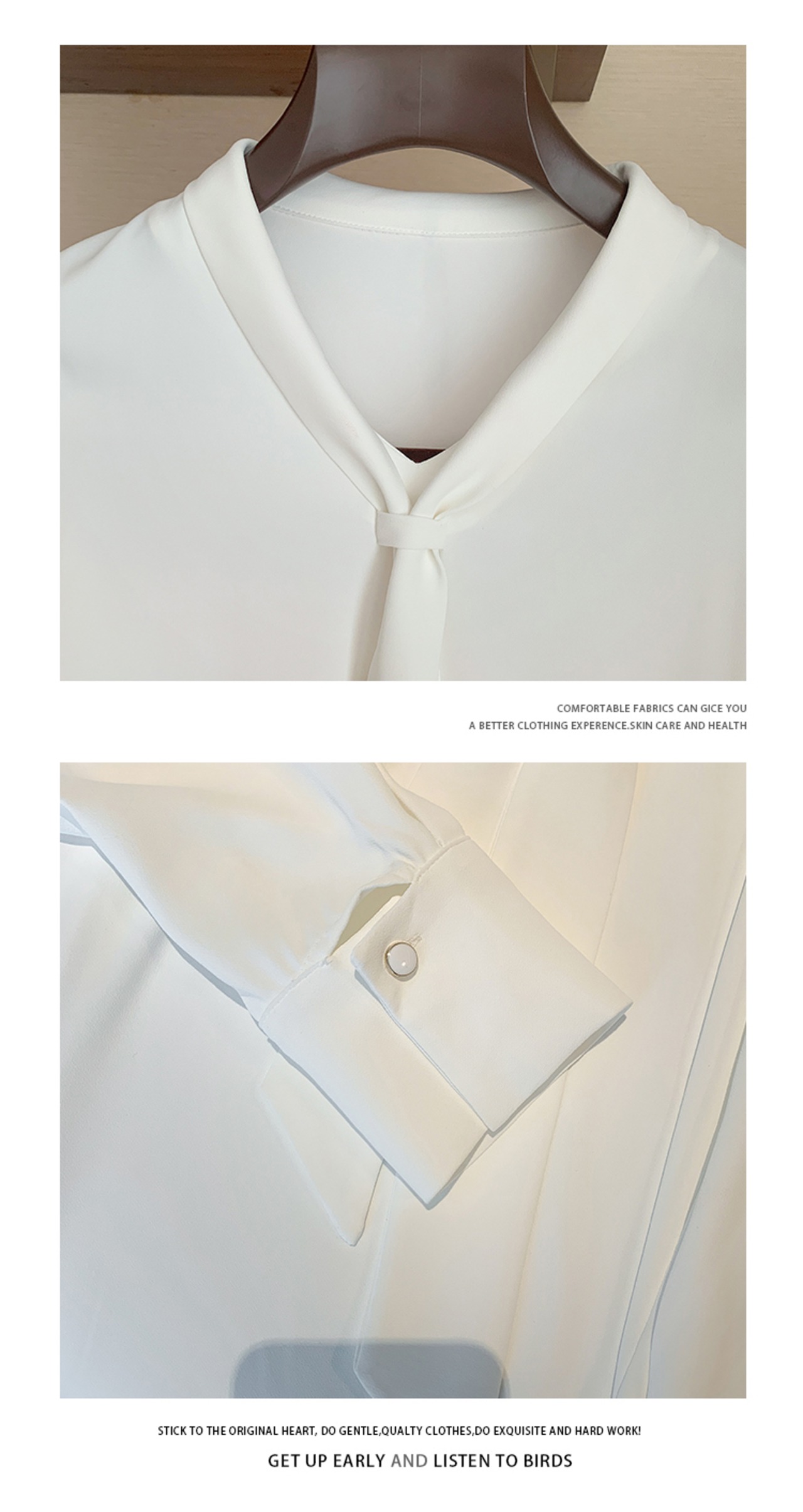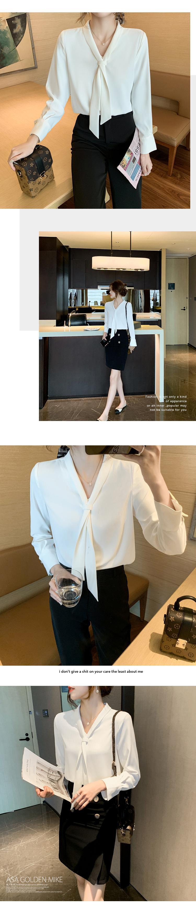 2021年秋新作フレンチホワイトシフォンシャツレディース長袖ストリーマーシャツVネック気質シフォンシャツトップス ロング オータム 秋物 yingd13239845441