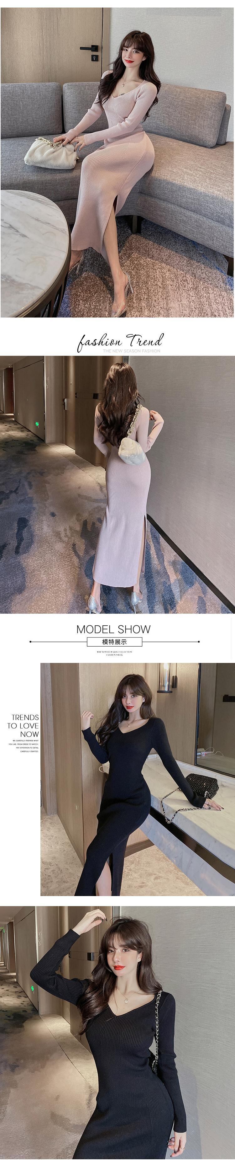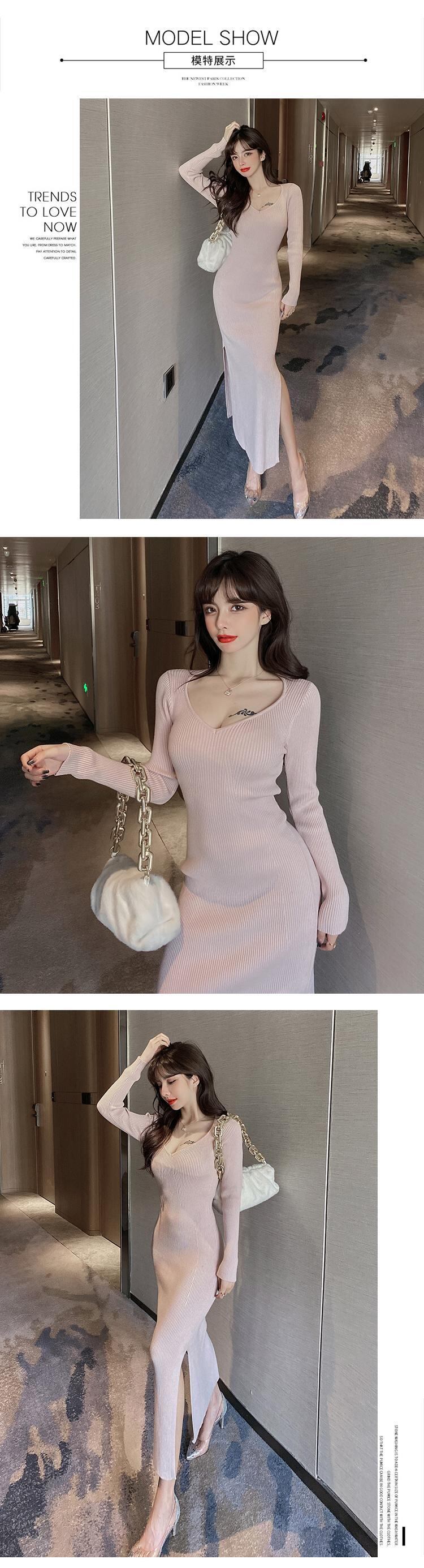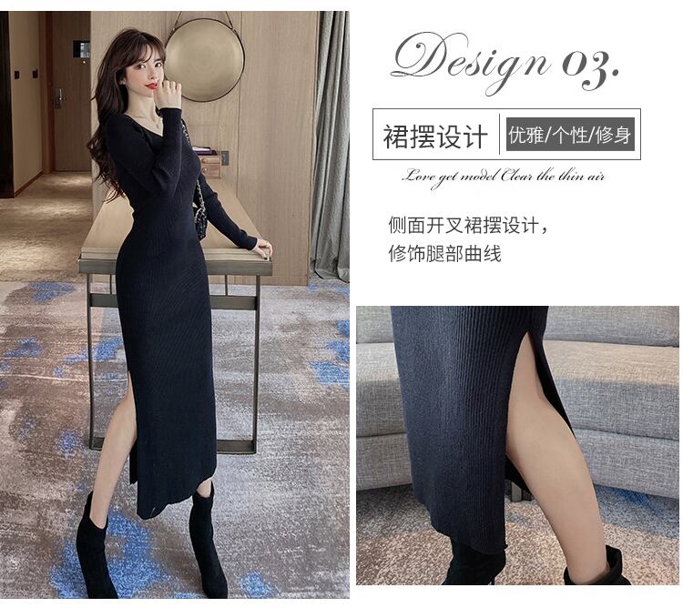 膝の上のフランスのレトロな長いセータースカートスリムな痩身気質の女神ファネイは、秋と冬の女性のニットドレスを取ります ロング オータム 秋物 ウィンター 冬物 yingd12386045313