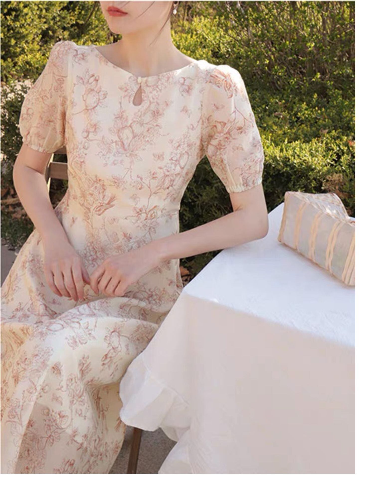 フランスの優しいスタイルのティーブレイクドレス気質セレブレディゆうじえライトクックスタイルパフスリーブフローラル改良チャイナドレス夏 サマー 夏物 花柄 yingd28526306335