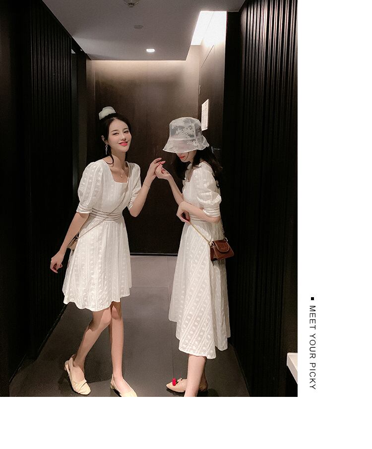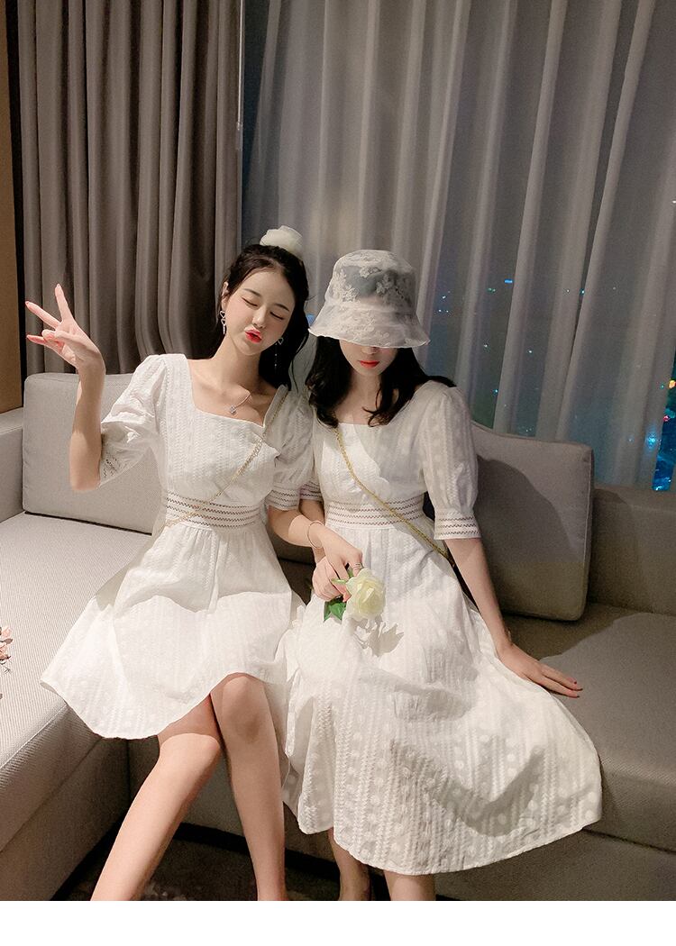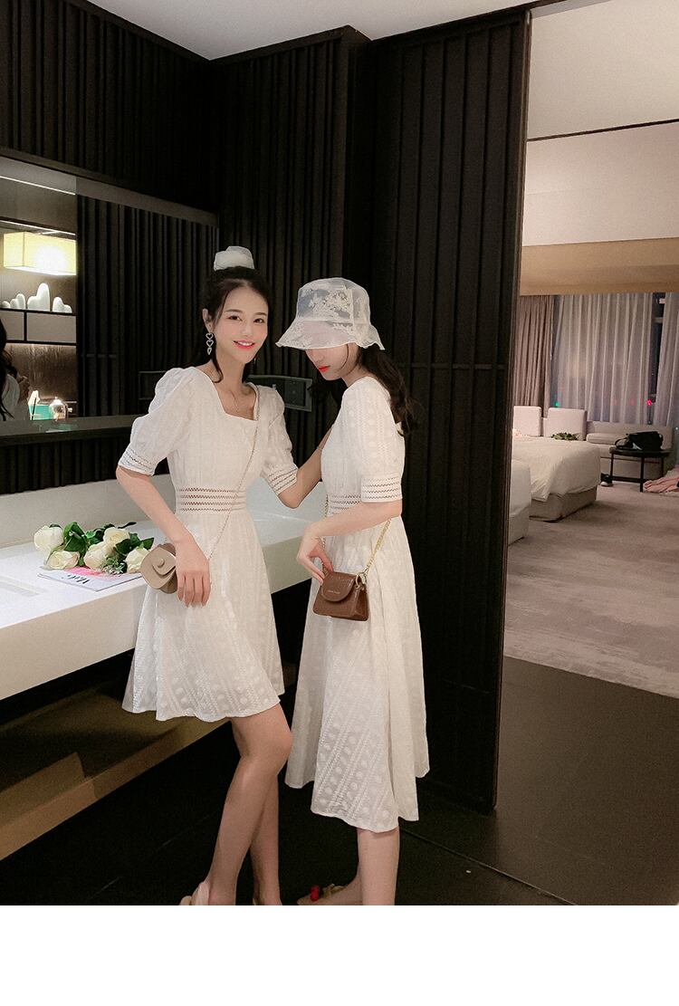 フランスのレトロなスクエアカラーパフスリーブレースドレス女性2021年夏新しいウエスト薄い優しい風ロングスカート サマー 夏物 スクウェア yingd87581338376