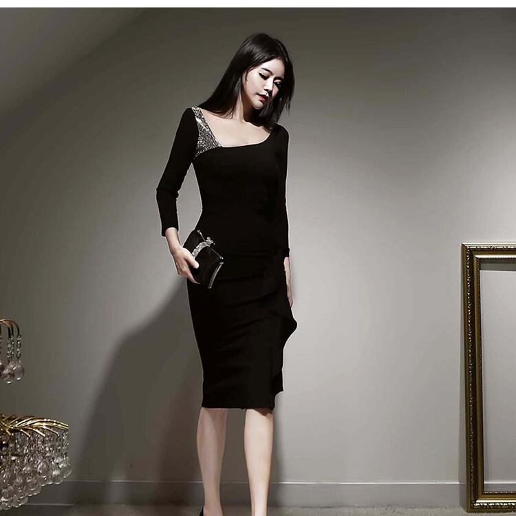 フランスのレトロなヘップバーンスタイルのリトルブラックドレススリムな痩身気質ロイヤルシスターライト成熟したスタイルセクシーなお尻ドレス女性の秋 オータム 秋物 yingd49172852215