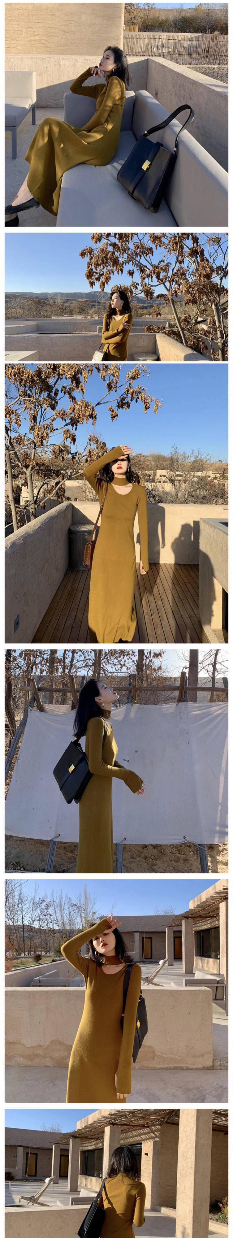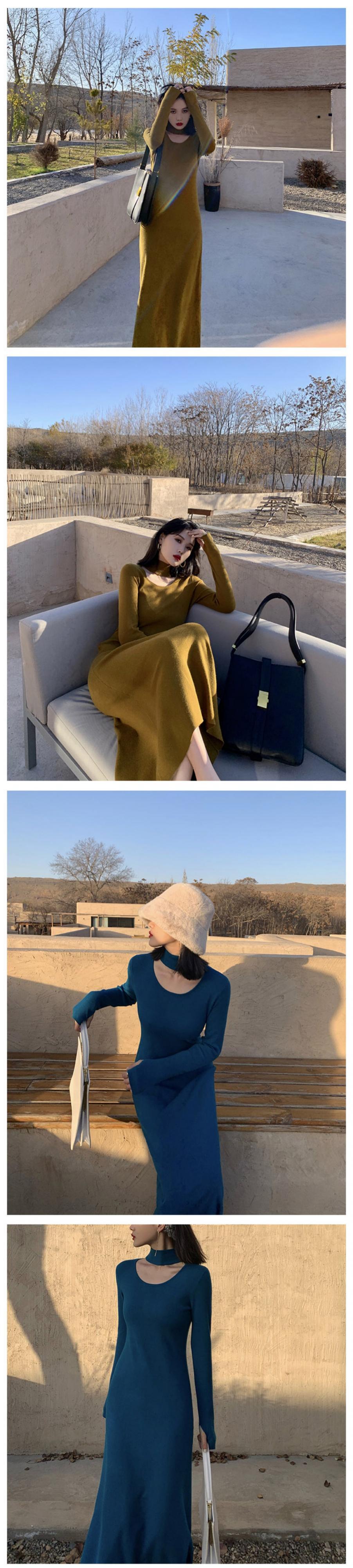 フランスのレトロなヘップバーンスタイルのホルターネックセーターロングスカートスリムな痩身気質、コートロングニットドレス女性 yingd23654264766