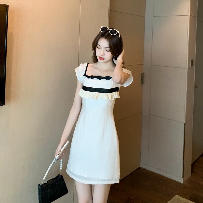 2021年夏の新しいフレンチレトロシックなデザインのスカートウエストスリミングスプライシングレースドレス サマー 夏物 yingd46186874136