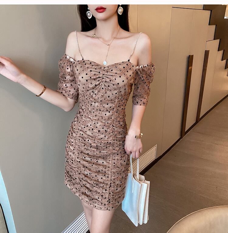 フランスのレトロなコールドスタイルの女性のウエストウエストのハイレベルな感覚は、薄い気質のセクシーなストラップレス水玉バッグヒップドレス夏でした サマー 夏物 yingd27064824729
