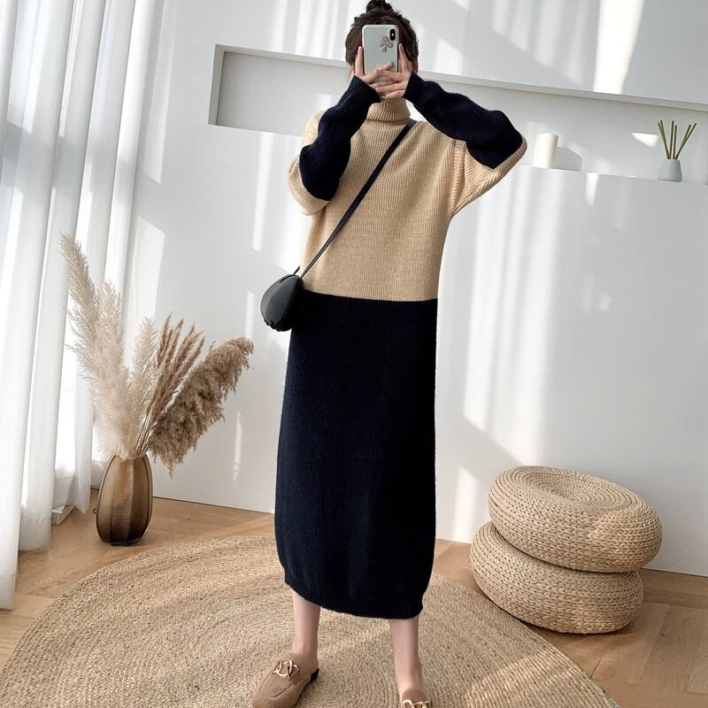 フレンチレトロコート、冬のスカート、ロングスカート、膝上セータードレス、ゆったりとした怠惰なハイネックニットドレス、女性の秋と冬 オータム 秋物 ウィンター 冬物 yingd36587808230