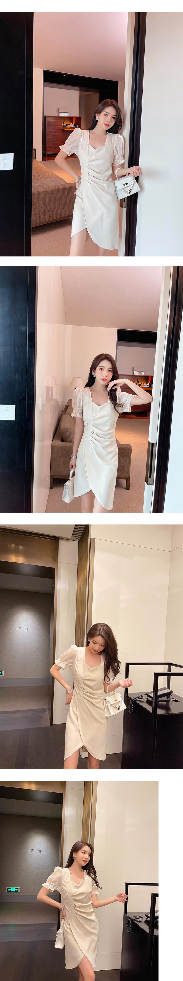 フランスのレトロなデザイン、不規則なウエストウエストと薄い気質の女神ファンパフスリーブドレス2021新しい夏 サマー 夏物 yingd12274564370