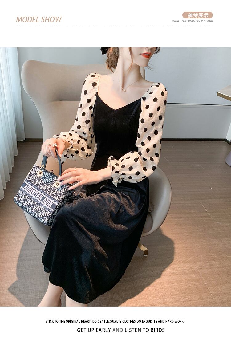 2021年春の新しいフレンチレトロロングスカートは薄くて気質の高いヘップバーンスタイルのスクエアネックベルベットドレスの女性 スプリング 春物 スクウェア yingd6114281897