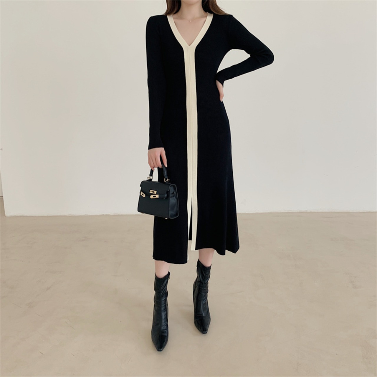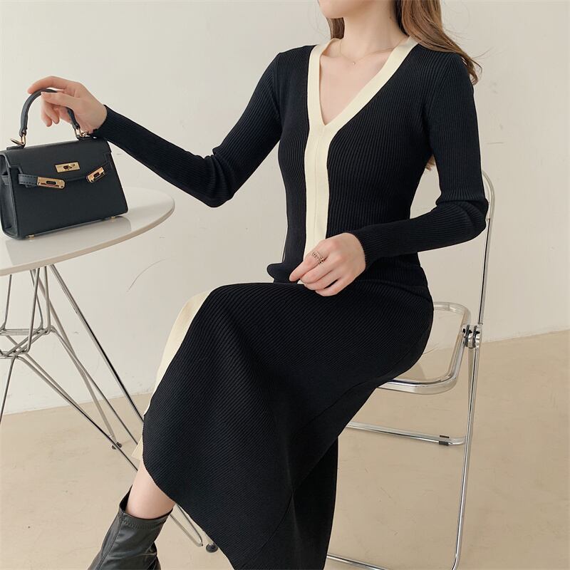 フランスのレトロなロングオーバーザニーセータードレス女性の2021年秋冬の新しいウエストと薄い気質のニットロングスカート オータム 秋物 ウィンター 冬物 yingd74896119507