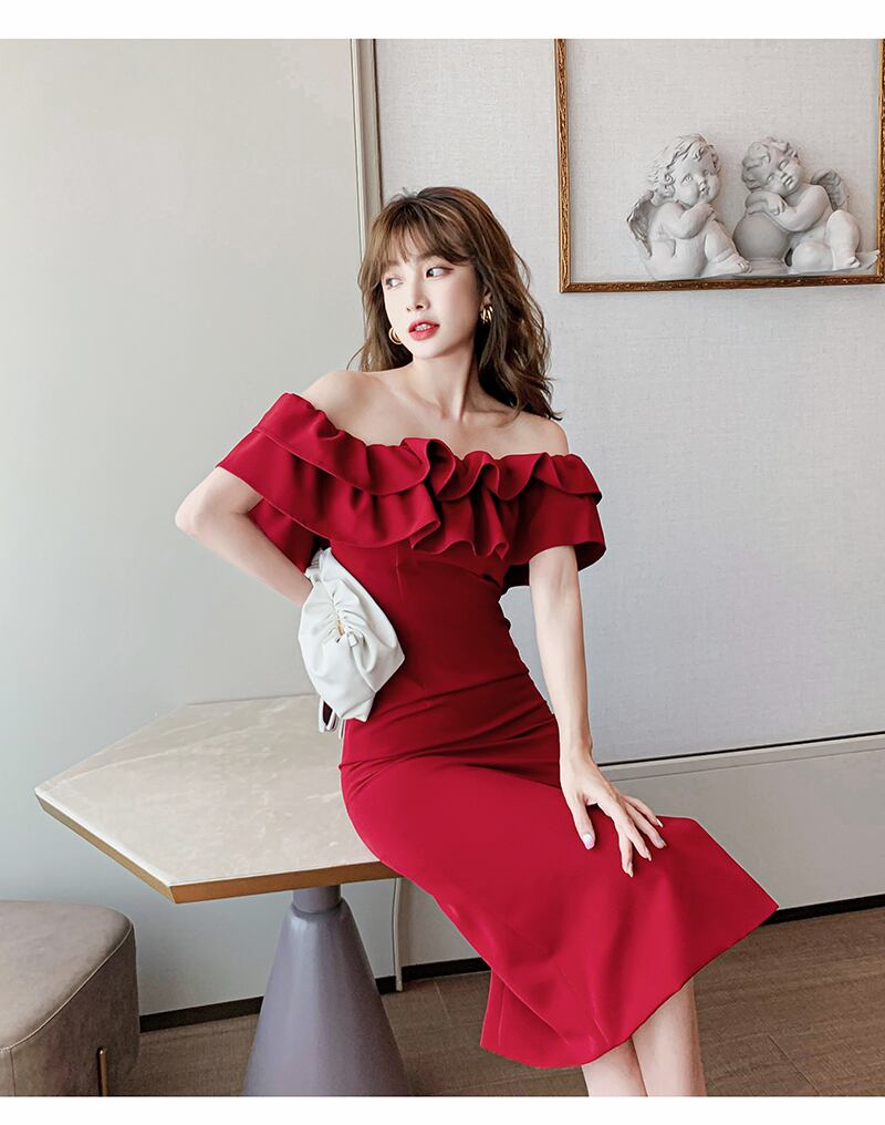 フランスのレトロな冷風女性の高級感のある高級感ライトラグジュアリーレディースセクシーなワンショルダーヘップバーンスタイルの赤いドレス夏 レッド サマー 夏物 yingd7712126338