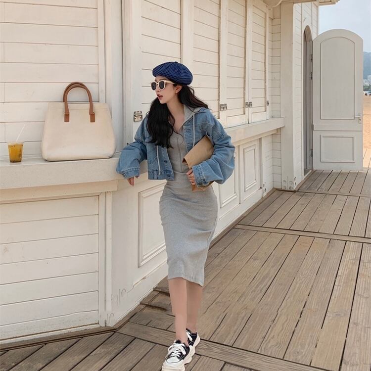 フード付きドレスレディース初秋のドレス2021新しいスリムで薄いデザインセンスニッチセクシーバッグヒップミディスカート オータム 秋物 yingd62000582600