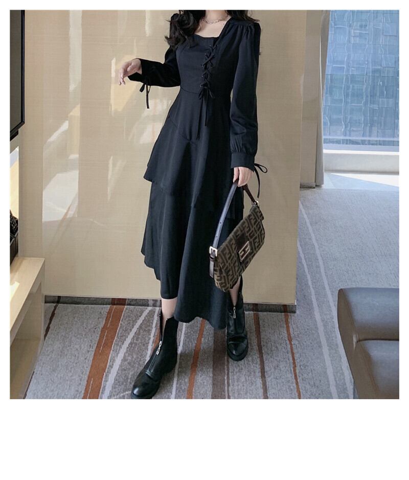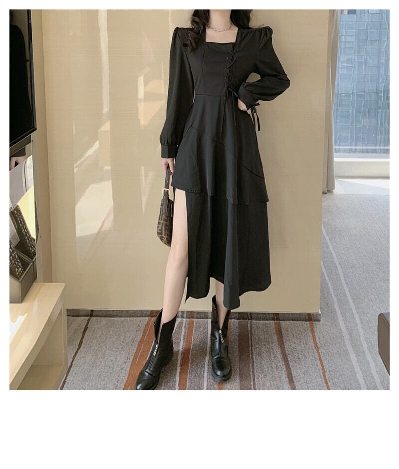 2021年春の新しい女性のフランスのレトロな冷風ハイレベルなウエスト感と薄い気質のスクエアカラーのドレスの女性 スプリング 春物 スクウェア yingd62563667890