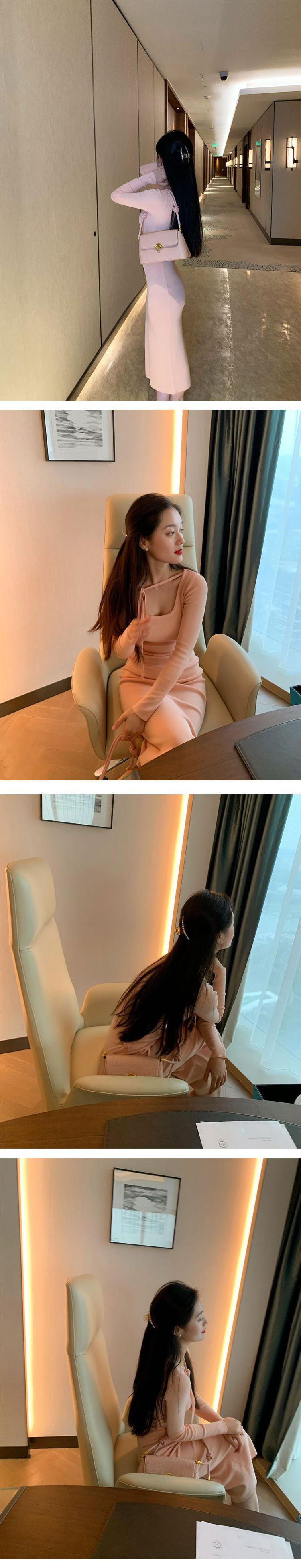 初秋の服2021年新作冷風女性の高級感軽やかな高級感を丁寧に加工したタイトフィットヒップニットワンピース オータム 秋物 yingd25540291338