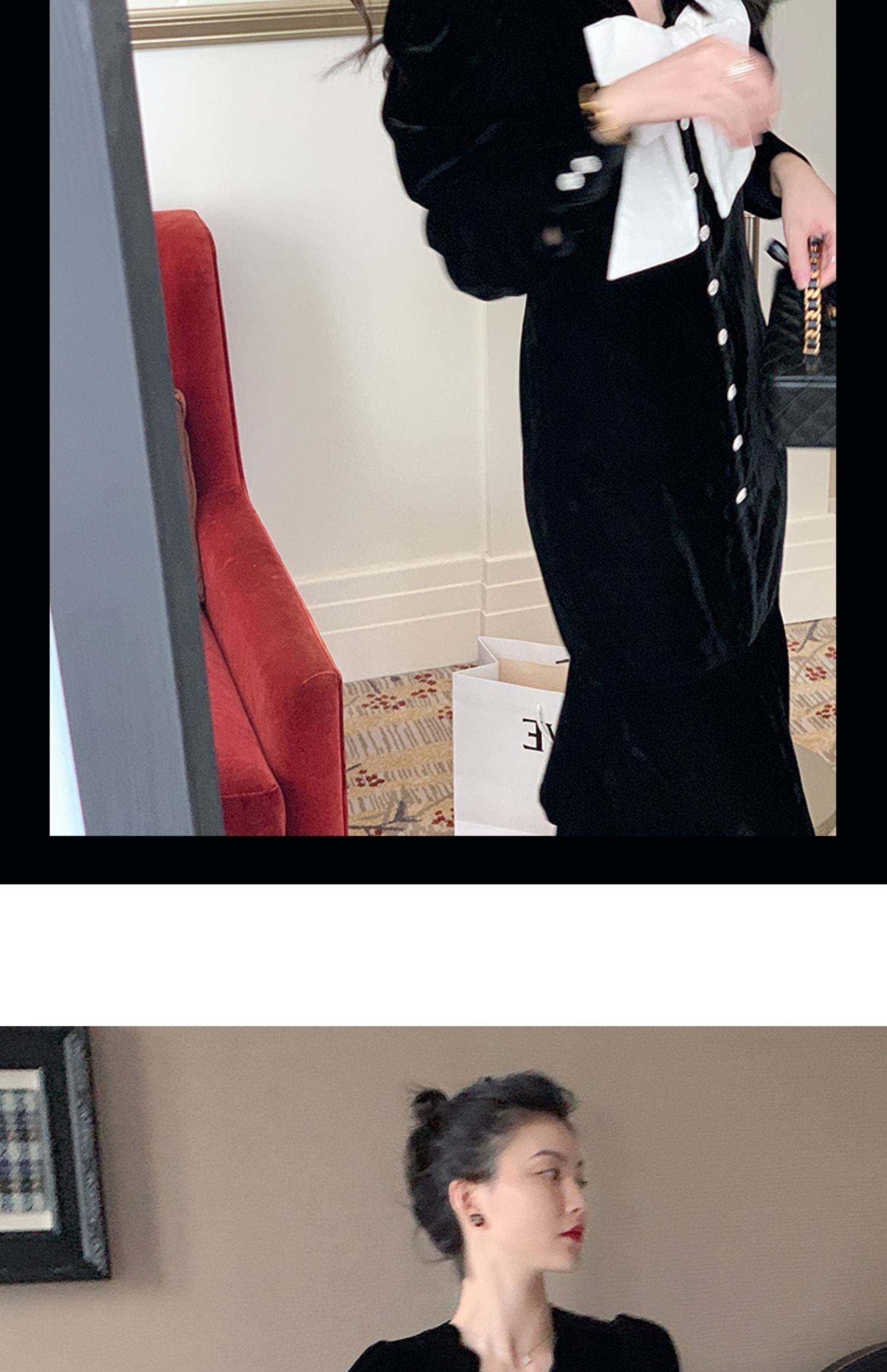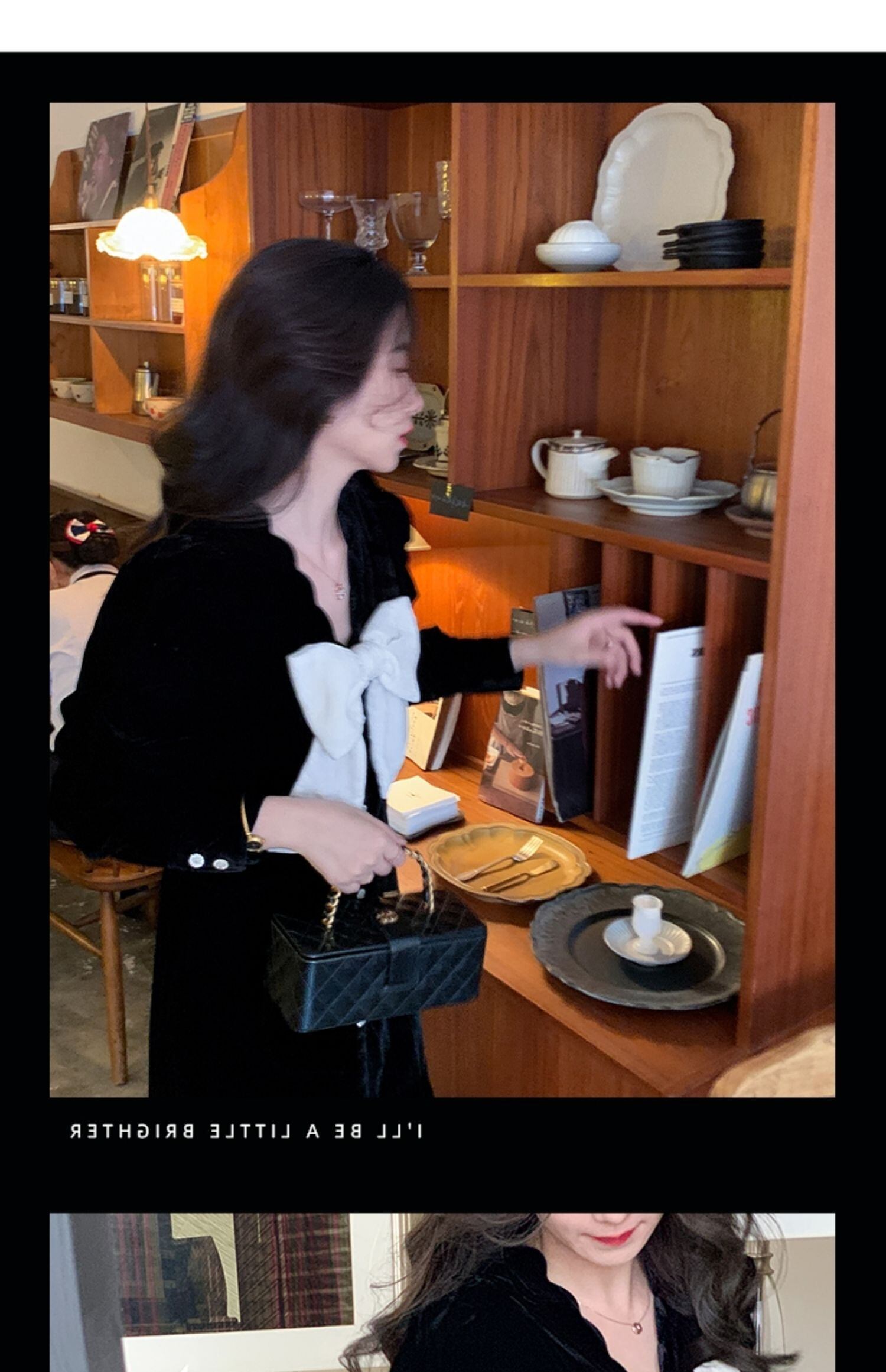 2021年秋新しいヘップバーンスタイルのリトルブラックドレスハイエンドライトラグジュアリーデザインボウベルベットドレス女性 リボン オータム 秋物 yingd64485316366