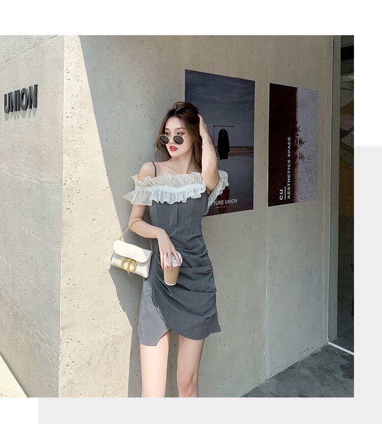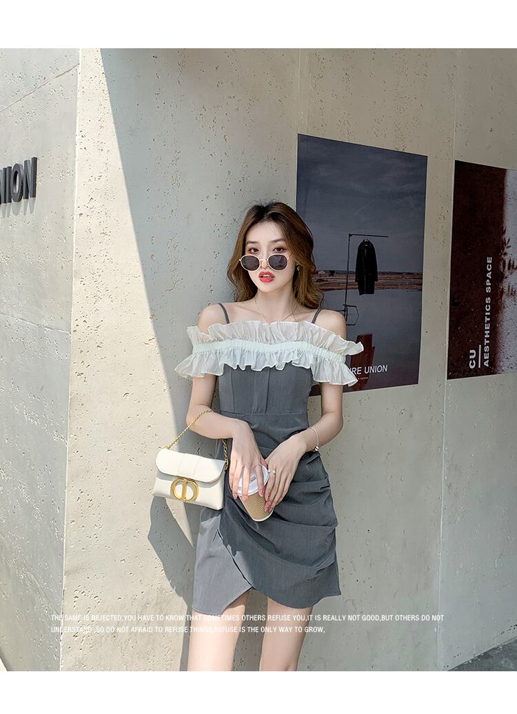 フランスのレトロなセクシーなワンショルダーストラップドレスデザインハイエンドスカート気質女神ファンストラップドレス女性の夏 サマー 夏物 yingd55488973573