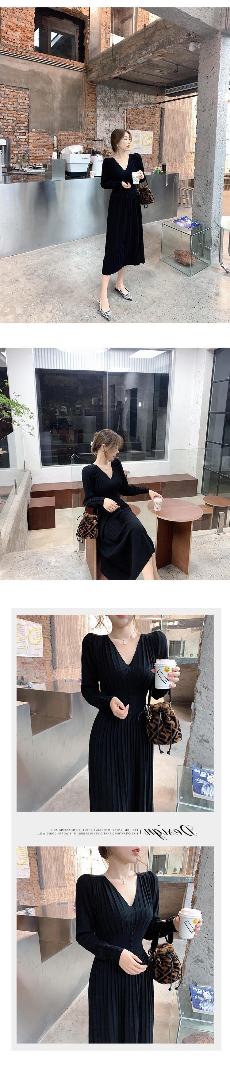 フランスのレトロ、冷たい風、高級感のある高級感、女性のセクシーなVネックロング、オーバーニーニットドレスの女性 yingd42501989509