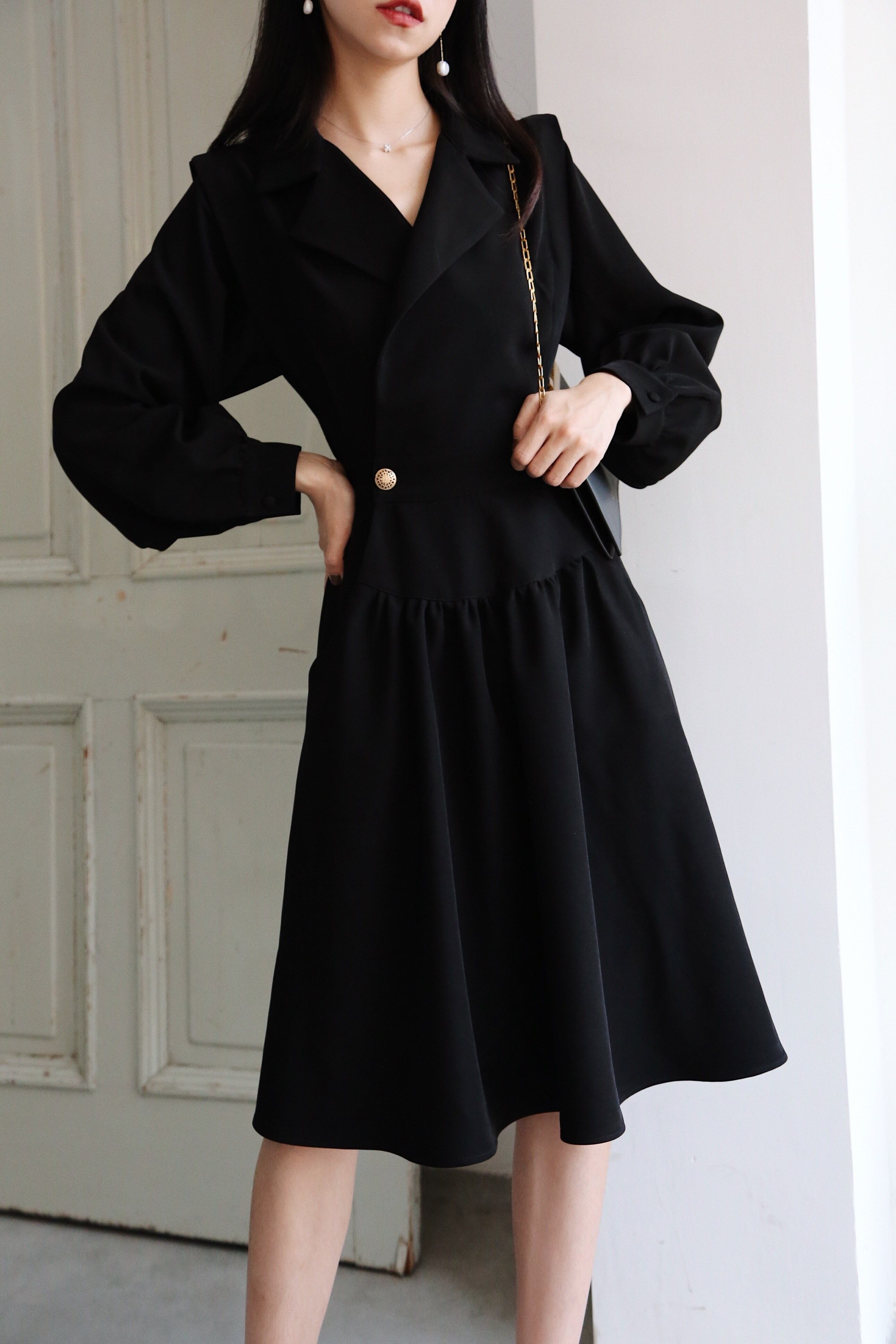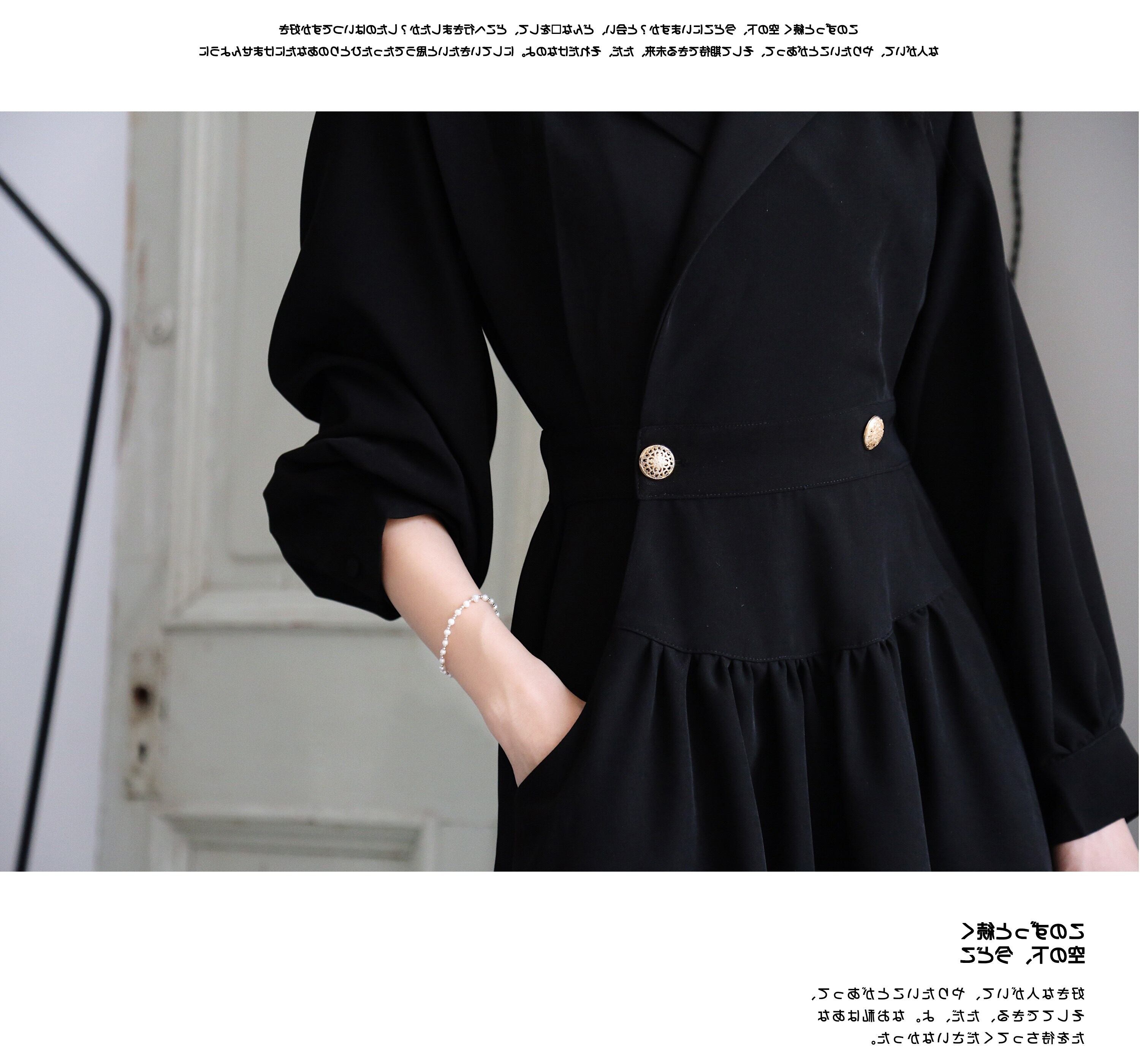 フランスのレトロなヘップバーンスタイルのウエストと薄い気質のデザインセンスの小さな黒いドレスYujieライト成熟したスタイルのシャツドレス女性 ブラック yingd76127366614
