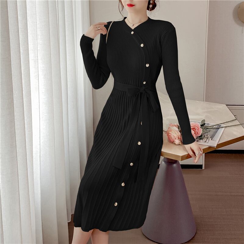 フランスのレトロな軽い成熟した風、ウエストは細かった、気質、セータースカート、スリムなニットドレス、女性の秋と冬 オータム 秋物 ウィンター 冬物 yingd89997591885