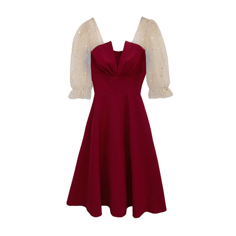 フランスのレトロなヘップバーンスタイルのロングスカート夏の新しいデザインセンスニッチYujieライト成熟した風ウエスト赤いドレス女性 レッド サマー 夏物 yingd1229640293