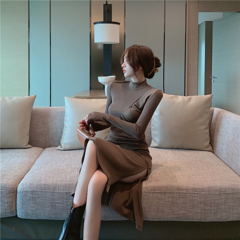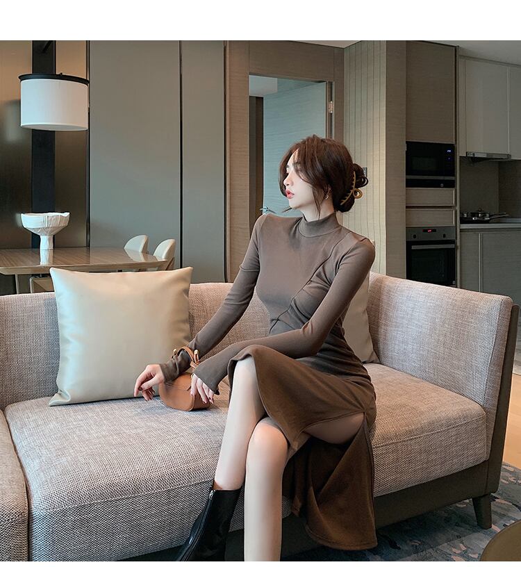 フランスのレトロなロイヤルシスター、軽いおなじみのスタイル、デザインセンス、折り目、スリムで薄い気質、長いスプリット、純粋な欲望の風のドレス ロング ピュア yingd28873732952