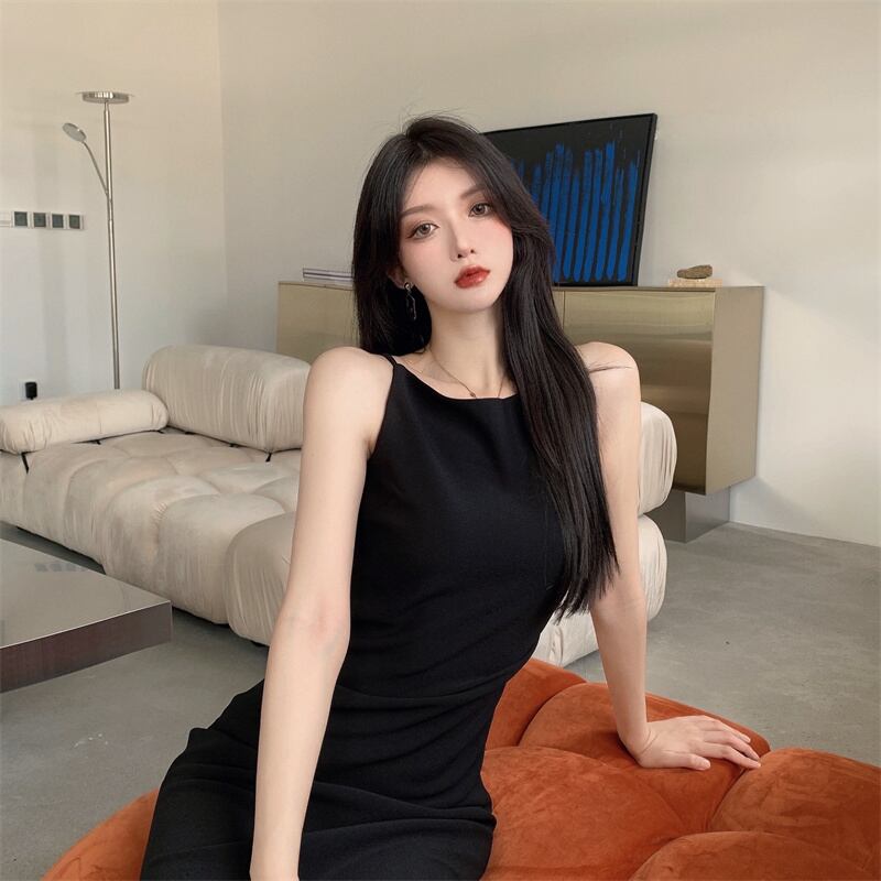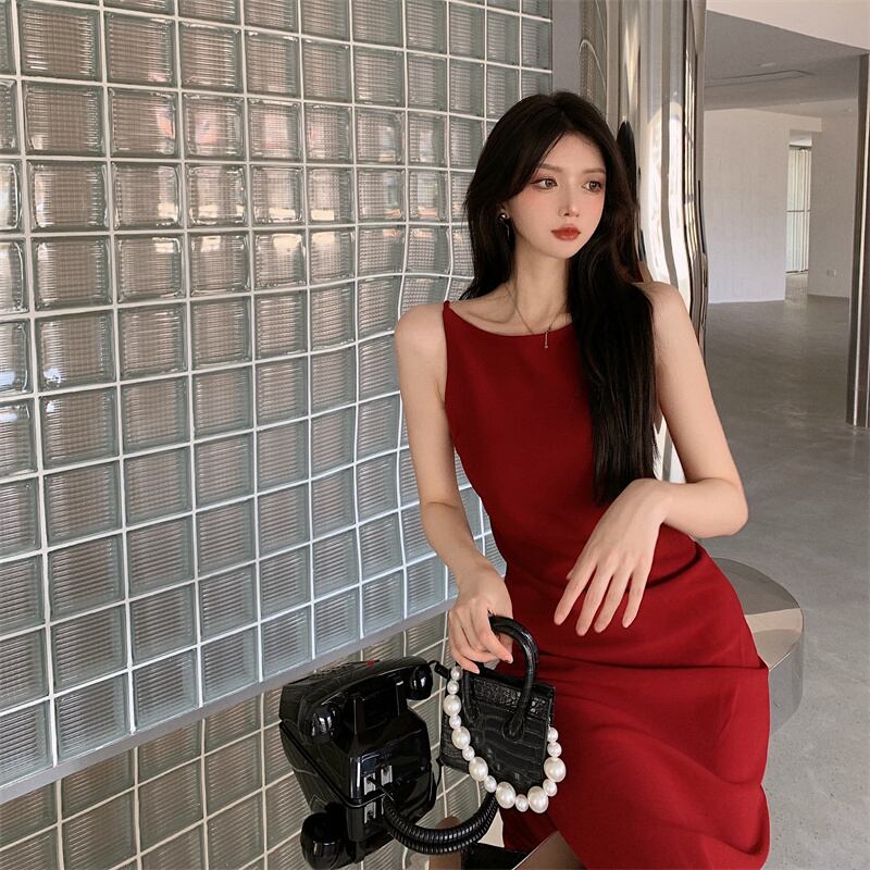 フランスのレトロなヘップバーンスタイルのウエストと薄さのスリングドレス、軽い成熟したスタイル、ワンショルダーのスリングドレス女性の夏 サマー 夏物 yingd95405176040