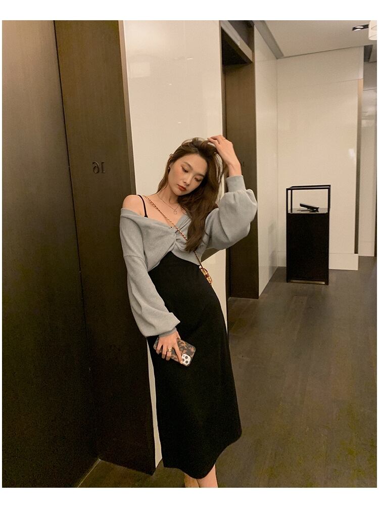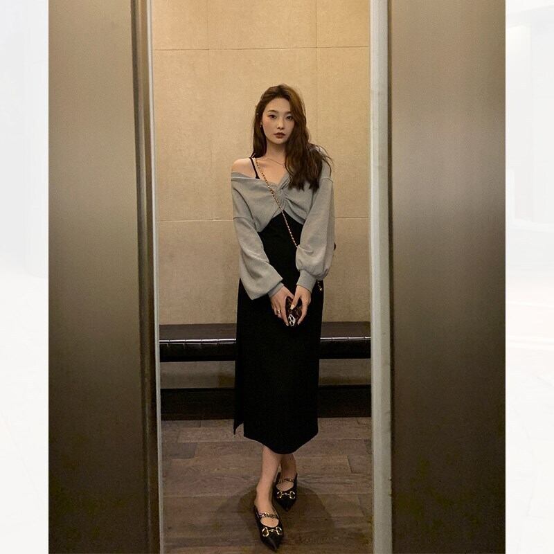 ピュアデザイーンウィンドスリングスカートスーツ女性2021年初秋新スタイルゆうじえライトマチュアウィンドニットスリングドレスツーピーススーツ オータム 秋物 yingd85060203282