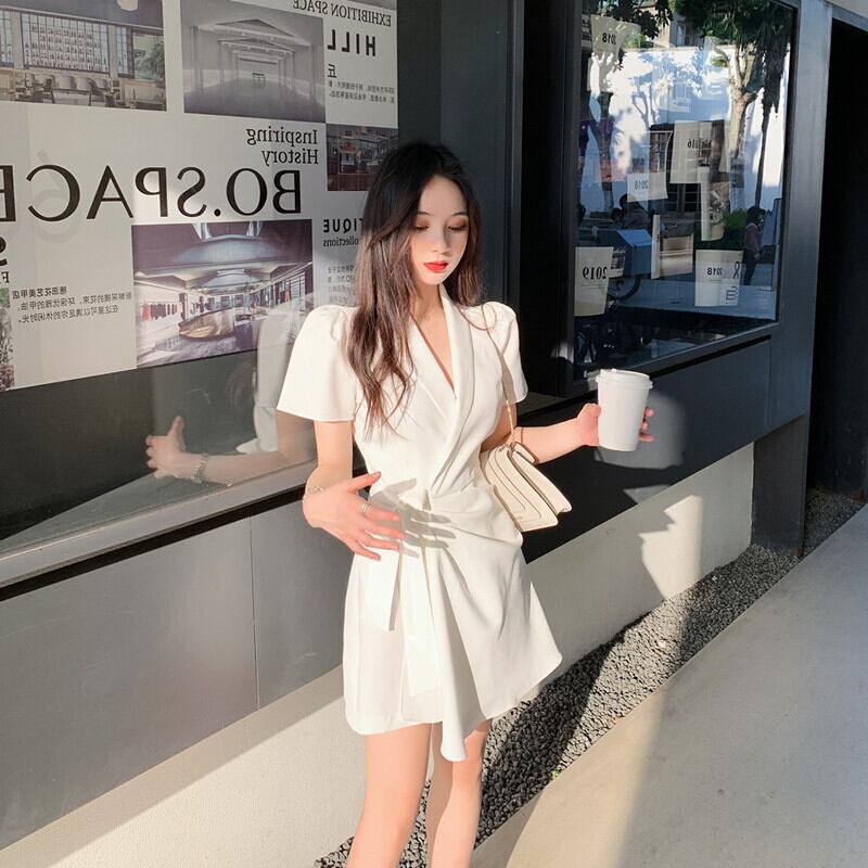 2021年夏の新しいフランスのレトロなウエストウエストは細くて気質の女神ファンYujieライト成熟したスーツドレス女性 サマー 夏物 yingd22483532404