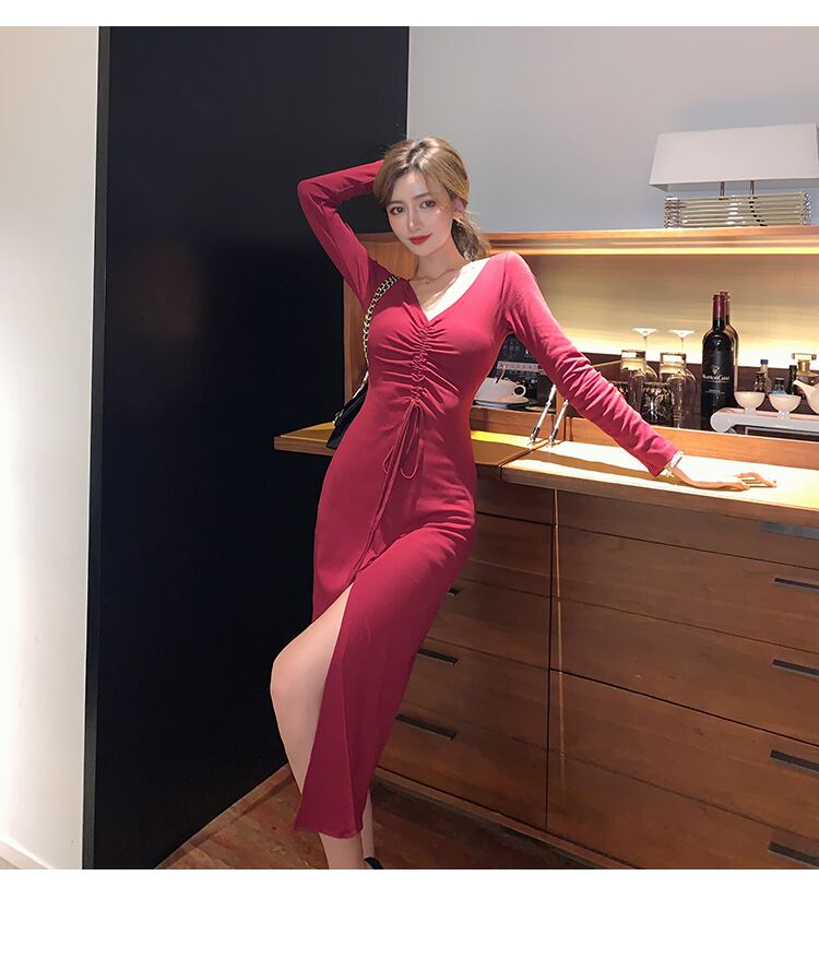 2021年秋新作風冷風婦人服ハイエンドデザインセンスニッチ巾着ロングスプリットドレスレディース オータム 秋物 yingd36757130108