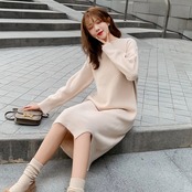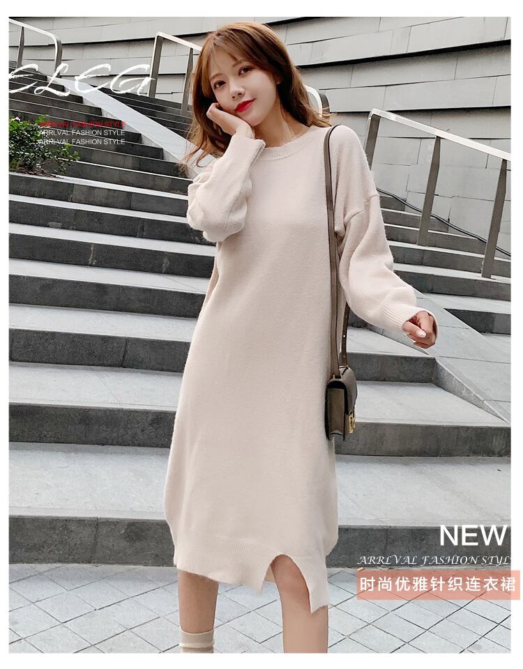 フレンチレトロミドル丈オーバーザニーセータースカートレディースルーズレイジースタイルヘッジベースニットワンピース秋冬 オータム 秋物 ウィンター 冬物 yingd90759542146