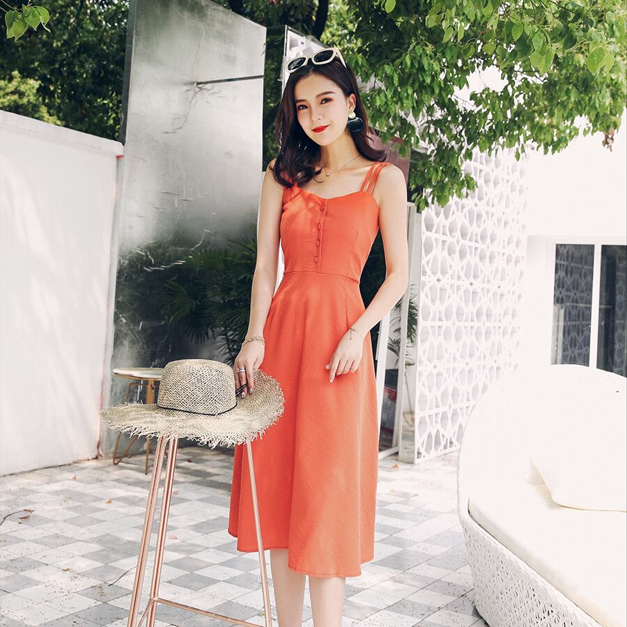 スリングドレス女性2020年夏新しいフランスのレトロなヘップバーンリトルブラックドレススーパーフェアリーウエストは細くて長いスカートでした ロング サマー 夏物 yingd36237147483