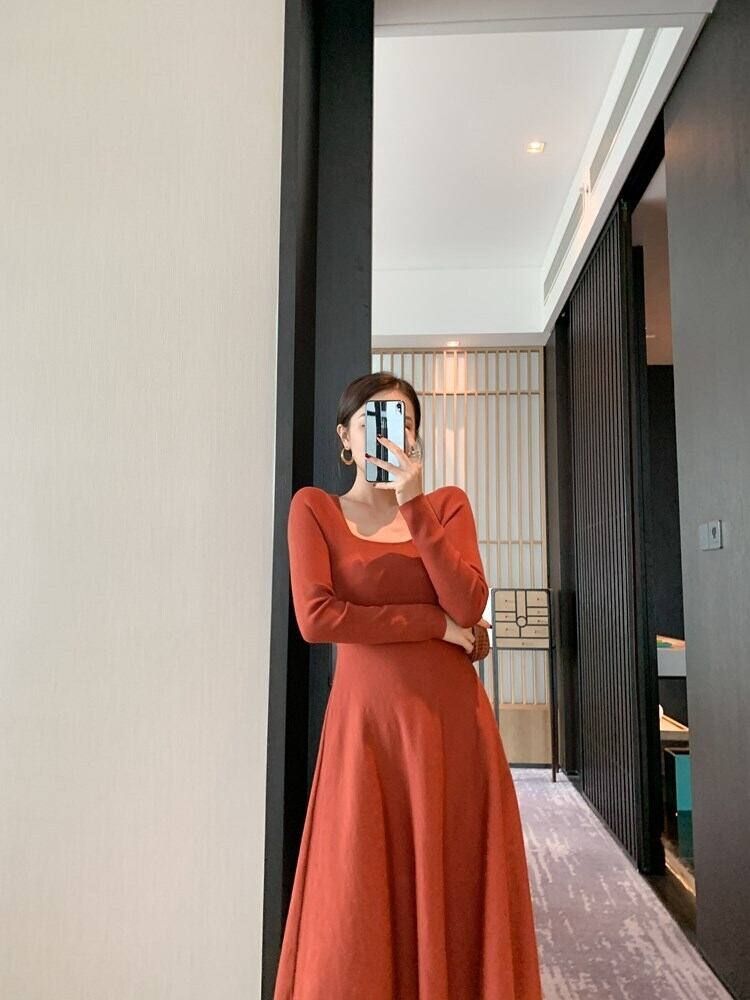 フランスのレトロな長い膝上セータースカート、ウエストは細く、優しいスタイル、ティーブレイク、スクエアネックニットドレス、女性 ロング スクウェア yingd79357848604