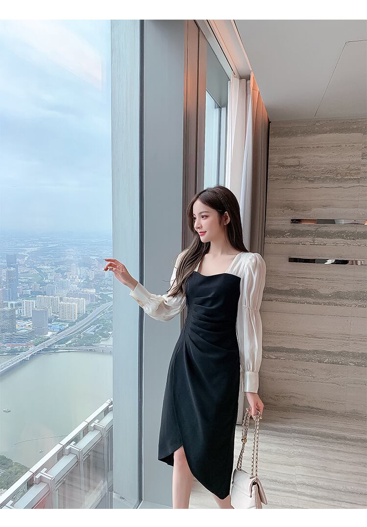 2021年秋新しいスタイルレトロヘップバーンスタイルリトルブラックドレス気質の女神ファンハイエンドプリーツスプリットドレス女性 オータム 秋物 yingd63333923792