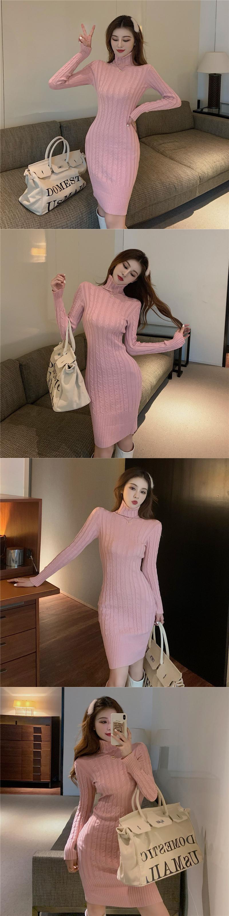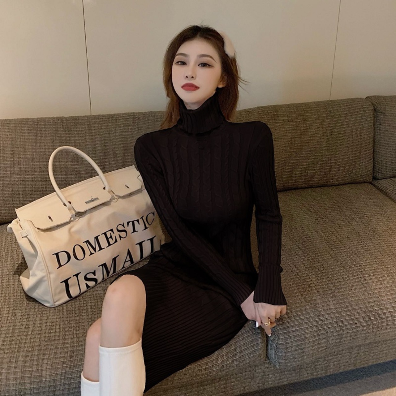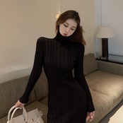 フランスのレトロなスリムセクシーバッグヒップセータースカートウエストは細く、ハイネックニットドレス女性秋冬 オータム 秋物 ウィンター 冬物 yingd86889079094