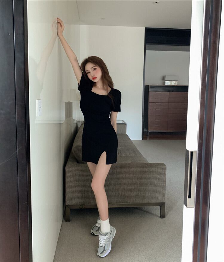 フランスのレトロな人気のヘップバーンスタイルのリトルブラックドレスの気質ウエストはより薄い黒のセクシーなスプリットドレスの女性の夏でした サマー 夏物 yingd64809579934