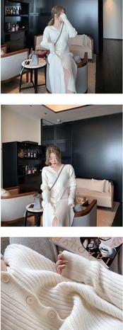 フレンチレトロコートロングオーバーザニーセータードレスフレンチニッチ優しい風ニットカーディガンドレス秋冬 オータム 秋物 ウィンター 冬物 yingd60092590091