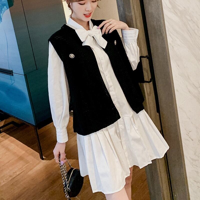 ウエスタンスタイルの年齢を減らし、薄い秋のスーツの女性の2020年の新しいニットベストシャツドレスファッションツーピーススーツ オータム 秋物 yingd61427105263