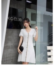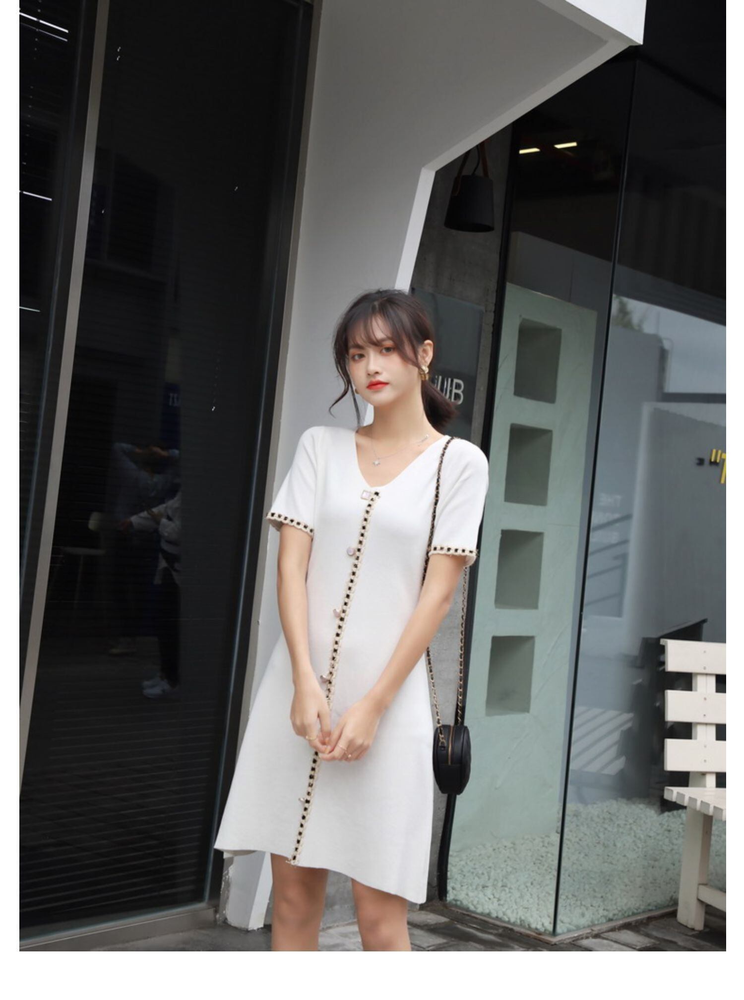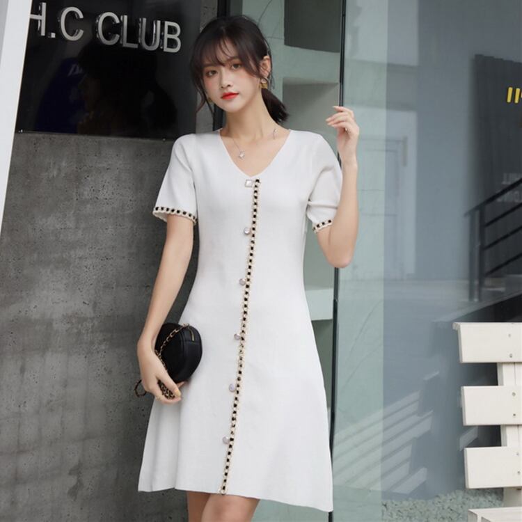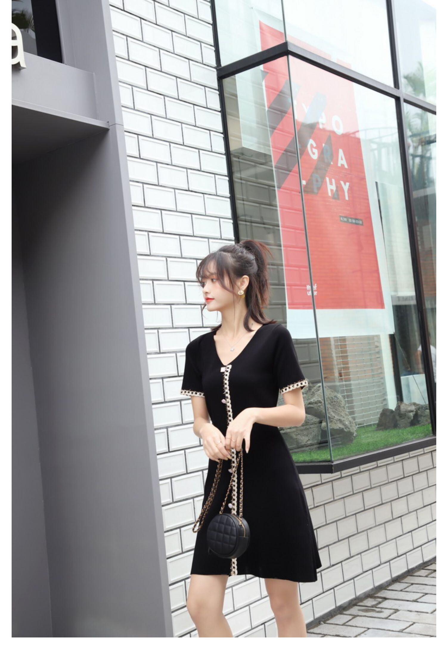 2020年の新しいフレンチレトロ気質VネックニットボトミングAラインスカートウエストは薄くて優しいウインドドレス女性の夏 サマー 夏物 yingd72487132534