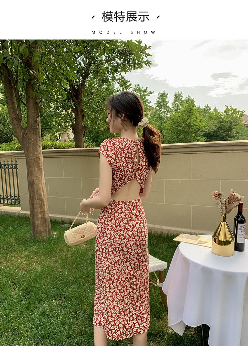 フランスのレトロなロングスカートは薄くて気質の高い女神ファンXiaojiセクシーな背中の開いた花柄のドレス女性の夏 サマー 夏物 yingd65186482597