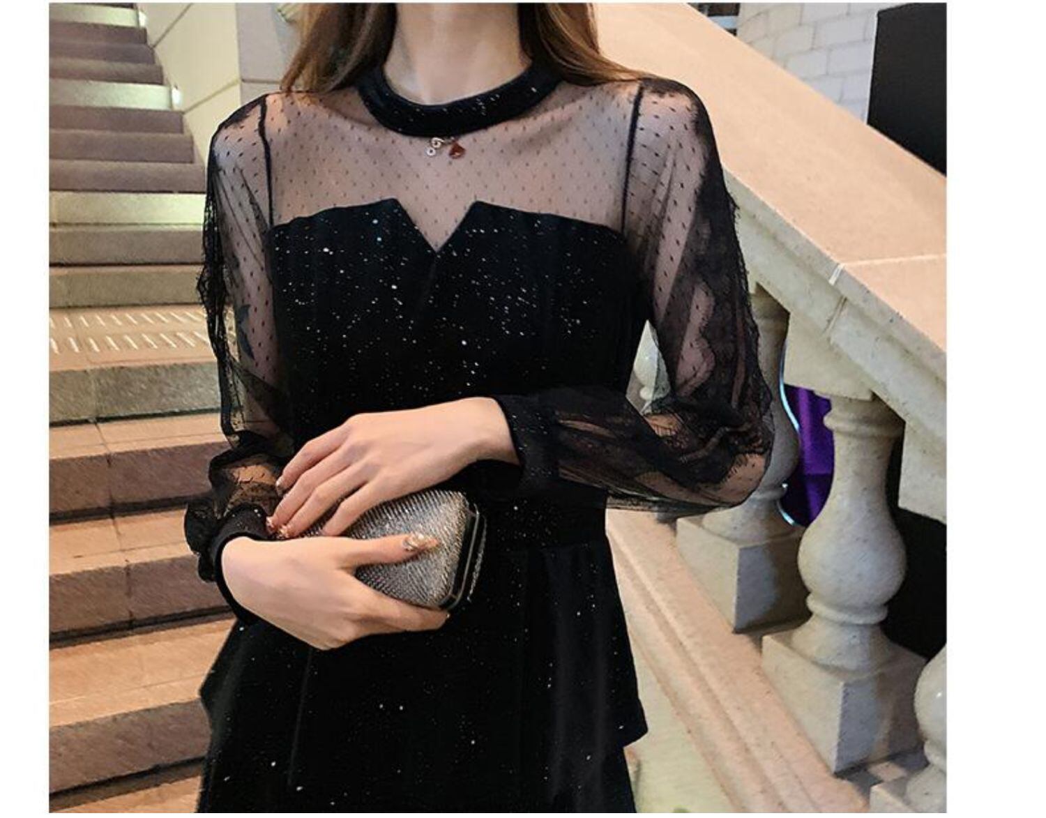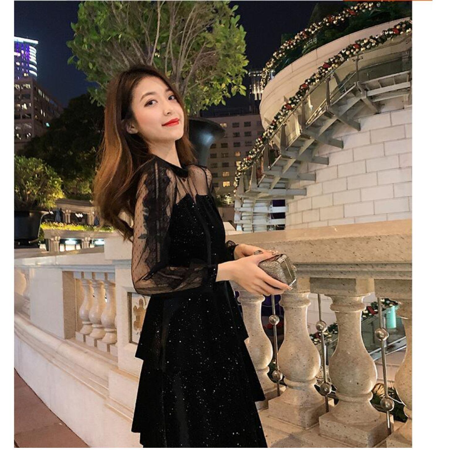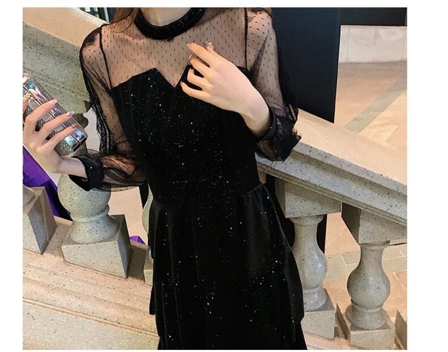 フレンチブラックドレスヘップバーンスタイルのウエストは薄くて軽い高級レディースネットガーゼドレス女性2021年春新作 スプリング 春物 yingd83523385525