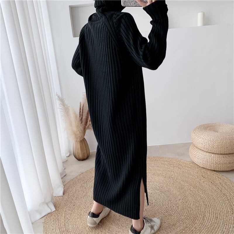 オーバーコートの気質、長い膝上セータースカート、厚手の暖かさ、スプリットニットドレス、女性の秋と冬のインナースカート ロング オータム 秋物 ウィンター 冬物 yingd82752988069
