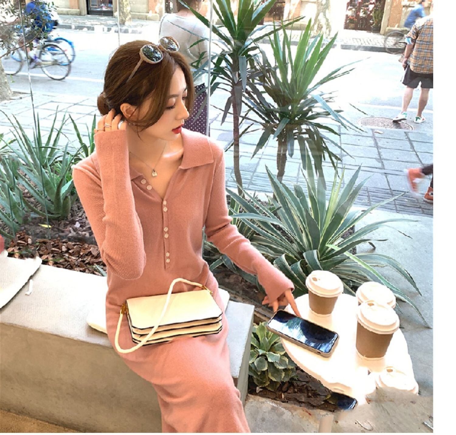 オーバーコート付きロングオーバーザニーセータードレススリムスリミング気質の女神ファンラペルインナーニットワンピース秋冬 オータム 秋物 ウィンター 冬物 yingd95023647107