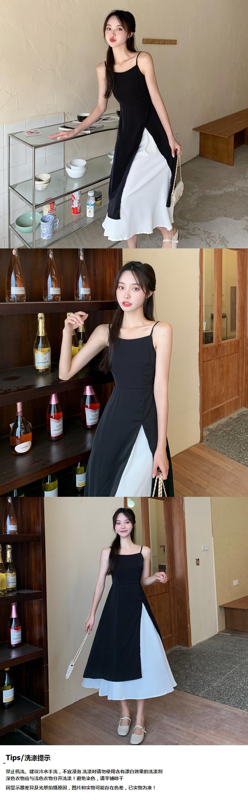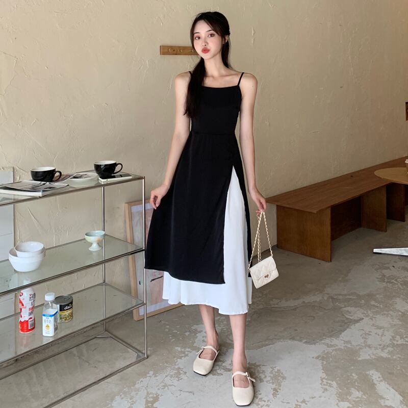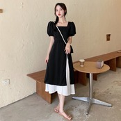フランスのレトロなヘップバーンスタイルのロングスカート夏のデザインセンス黒と白のステッチYujieライト成熟したスタイルのパフスリーブドレス女性の夏 ホワイト ブラック サマー 夏物 yingd85269186587