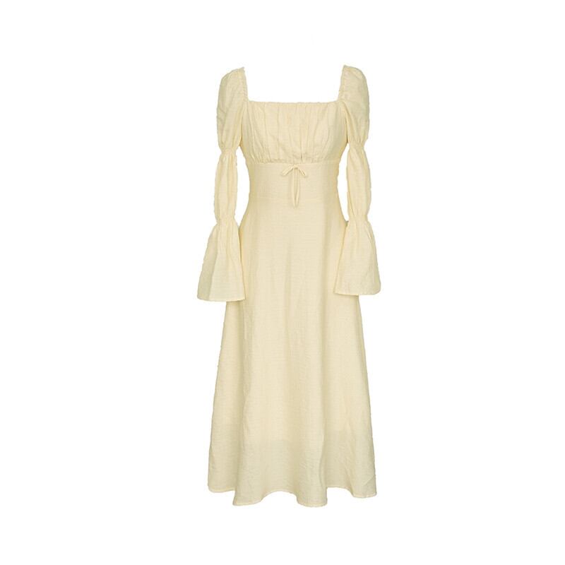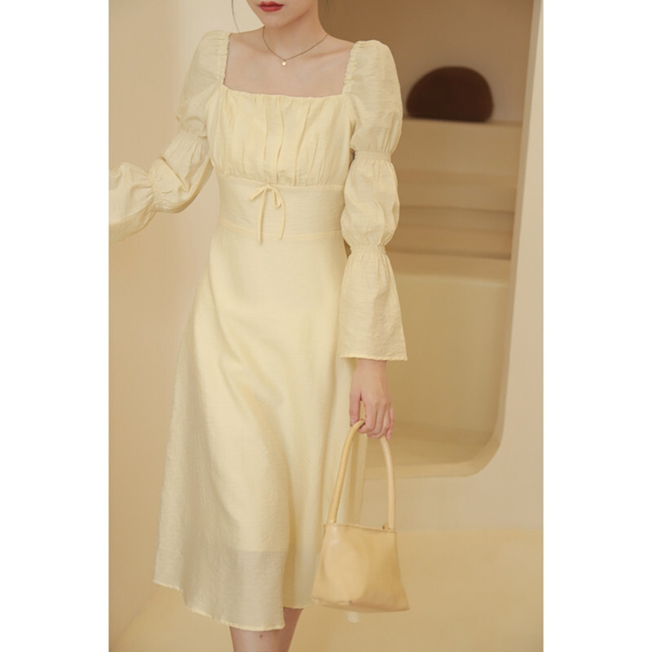 初秋のドレス2021新しいフレンチスタイルのニッチな穏やかな風の気質の女神ファンハイセンススクエアネック長袖ドレス ロング オータム 秋物 スクウェア yingd30597739744