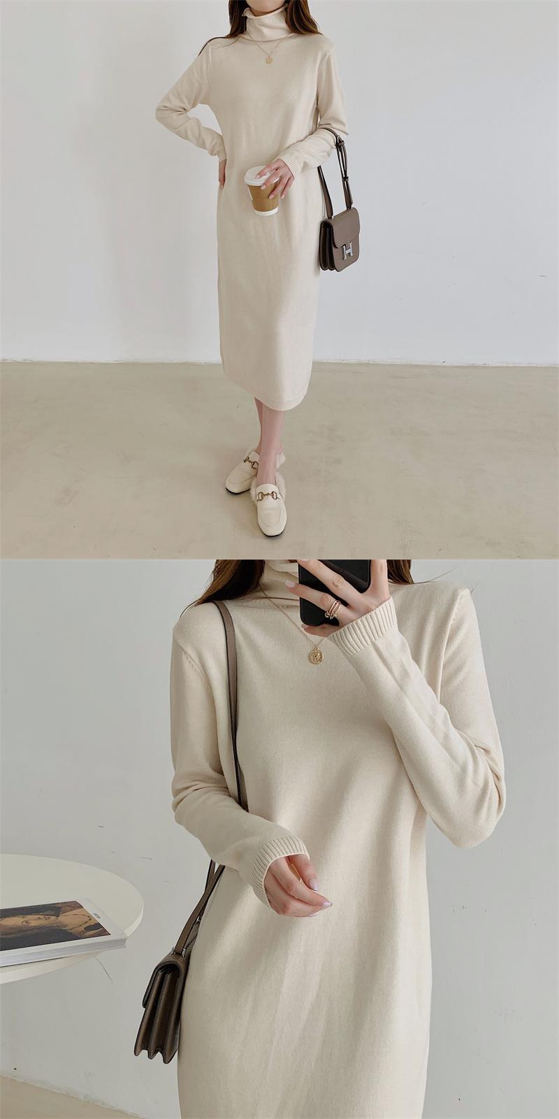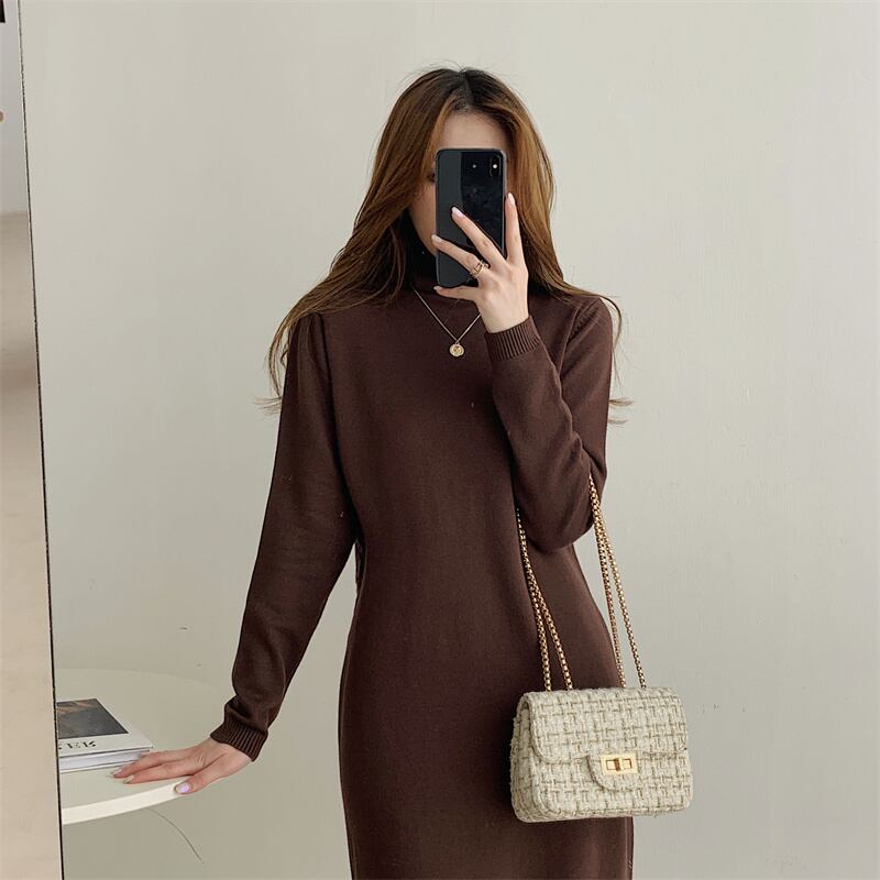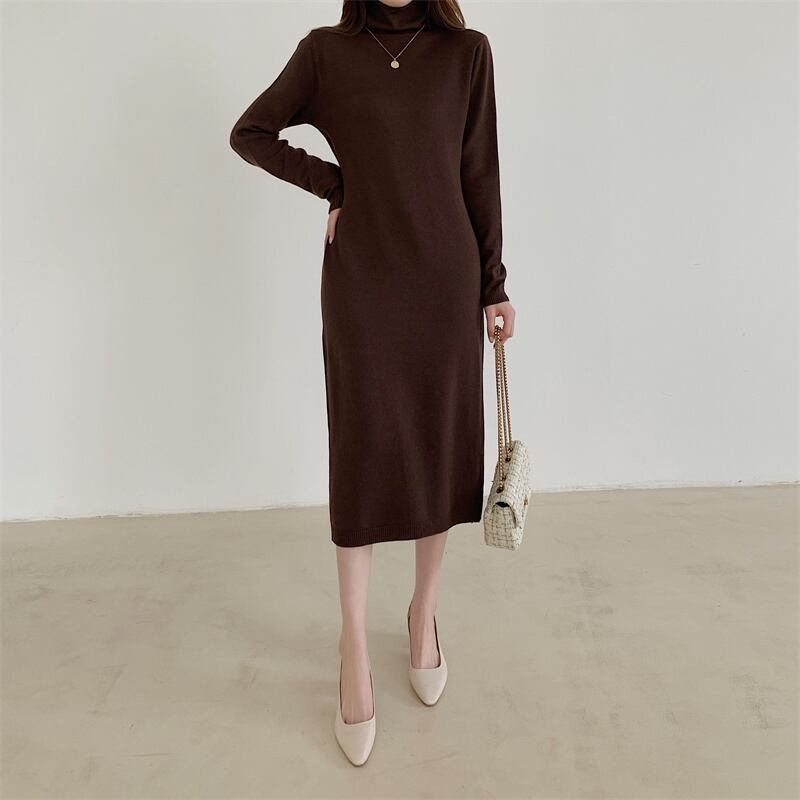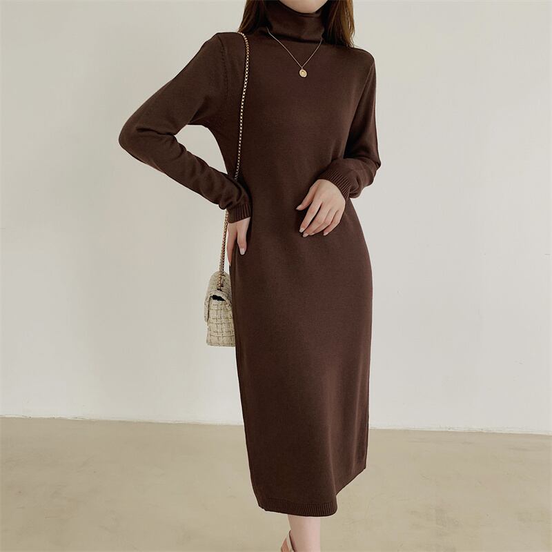 コートとスカートのセーターを着て腰を閉じ、細い気質、穏やかな風、ハイネック、ニットドレス、秋と冬の女性を示します オータム 秋物 ウィンター 冬物 yingd71162288458