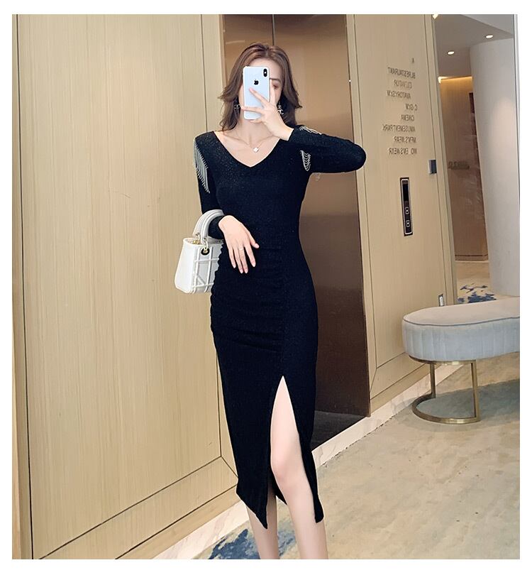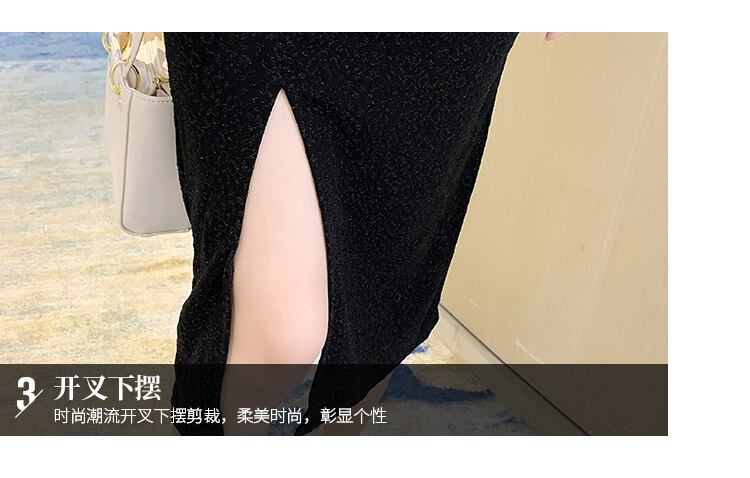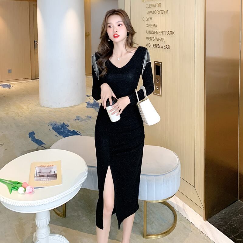 2021年秋新しいフランスのレトロなヘップバーンスタイルの小さな黒いドレス高品質の軽い豪華なセクシーなスプリットドレスの女性 ブラック オータム 秋物 yingd43301418809