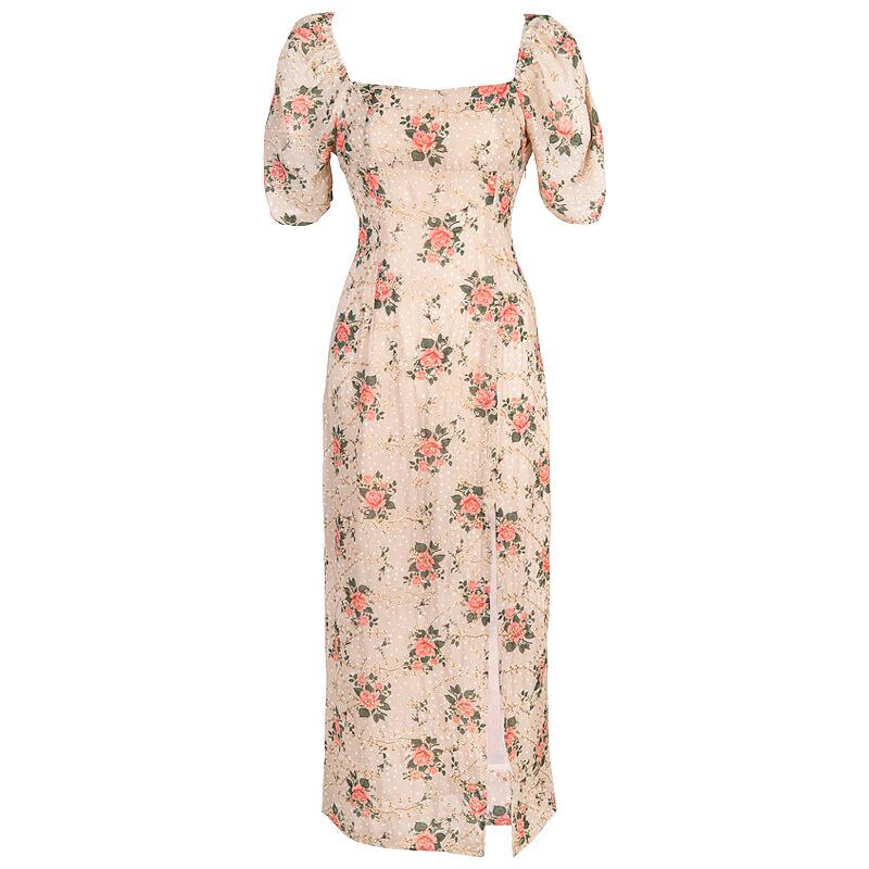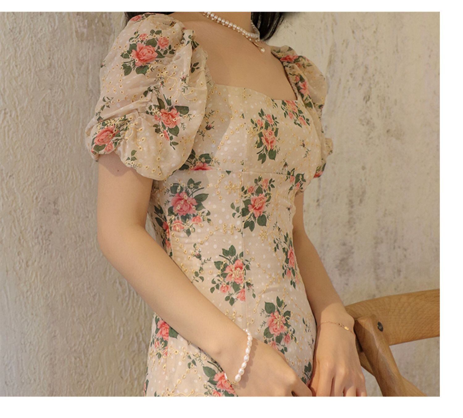 チャイナドレス改善2021年夏新しいフランスのレトロな正方形の襟のデザインセンス分割刺繡花柄ドレス女性 刺繍 サマー 夏物 スクウェア yingd90753788903