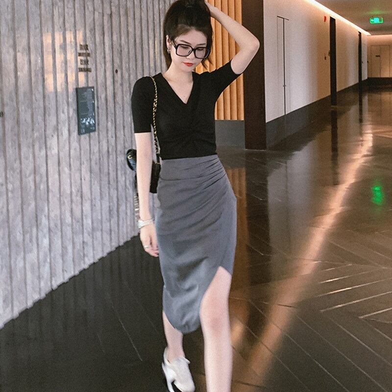 フランスのレトロな軽い成熟したスタイルのスーツの女性2020年夏の新しい気質の女神ファンスカートスーツツーピース サマー 夏物 yingd13632128382