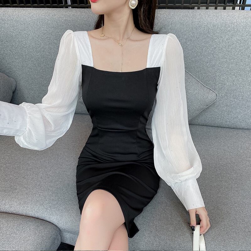 初秋の服2021年新作フレンチレトロヘップバーンスタイルロングスカートスリムスリミングハイセンスステッチドレス女性 オータム 秋物 yingd90948663294