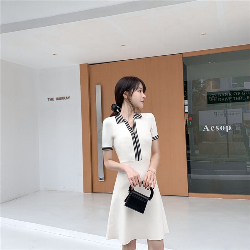 ポロスカート女性2020年夏新しいフランスのレトロな優しい風の白いドレス女性のウエストは細くて気質 ホワイト サマー 夏物 yingd99873189095